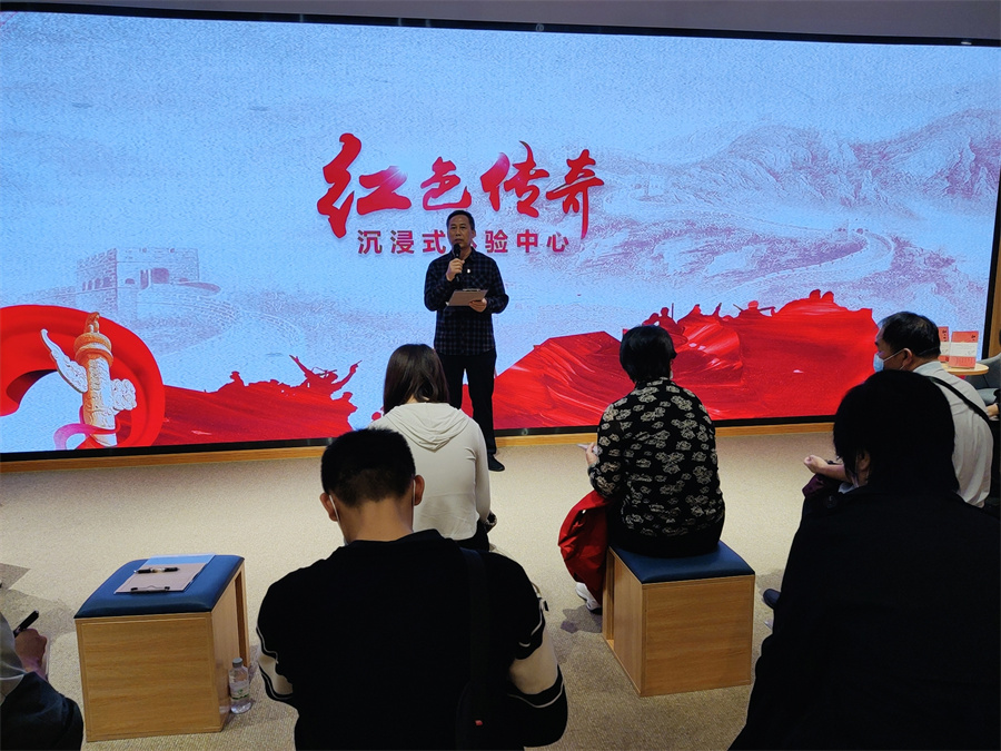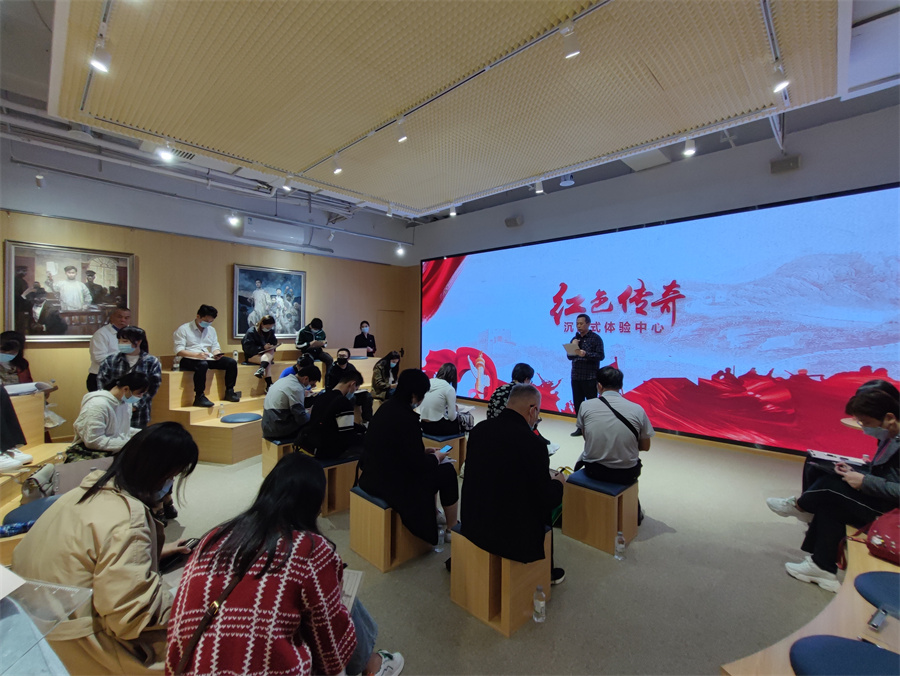 在麗竹學校黨支部書記王良友同志的帶領下,黨員代表李玲玲,入黨積極分子代表楊燕華一行人先跟著大部隊來到了《紅色傳奇》》沉浸式體驗中心。