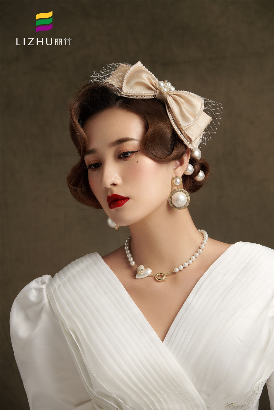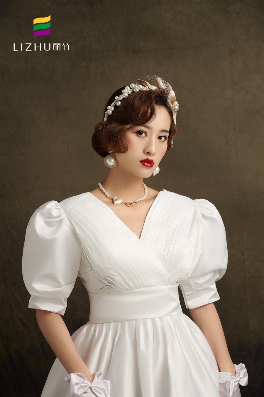廣西化妝培訓學校(麗竹化妝培訓學校)作品---輕復古系列妝容造型:時尚優(yōu)雅的復古盤發(fā),佩戴香檳蝴蝶結(jié)頭飾點綴,畫上大氣動人麗人妝,穿上簡潔緞面氣質(zhì)婚紗,展現(xiàn)出既純潔又優(yōu)雅的獨有氣質(zhì)。