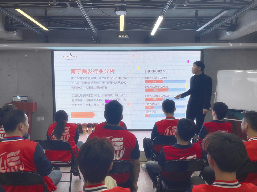 宣講會(huì)上,梁經(jīng)理在現(xiàn)場(chǎng)不僅和同學(xué)們討論了南寧美發(fā)專業(yè)培訓(xùn)學(xué)校學(xué)習(xí)技術(shù)的好處以及必要性,南寧美發(fā)行業(yè)的市場(chǎng)分析,針對(duì)學(xué)員們提出的疑問(wèn),如南寧美發(fā)設(shè)計(jì)師不同級(jí)別的收入情況,南寧常見(jiàn)美發(fā)店的分類及項(xiàng)目介紹,南寧有規(guī)模的美發(fā)店人員配置,南寧美發(fā)從業(yè)人員從基層開(kāi)始的晉升機(jī)制等,關(guān)乎美發(fā)新人如何成長(zhǎng)的重要內(nèi)容都做出了詳細(xì)解釋。