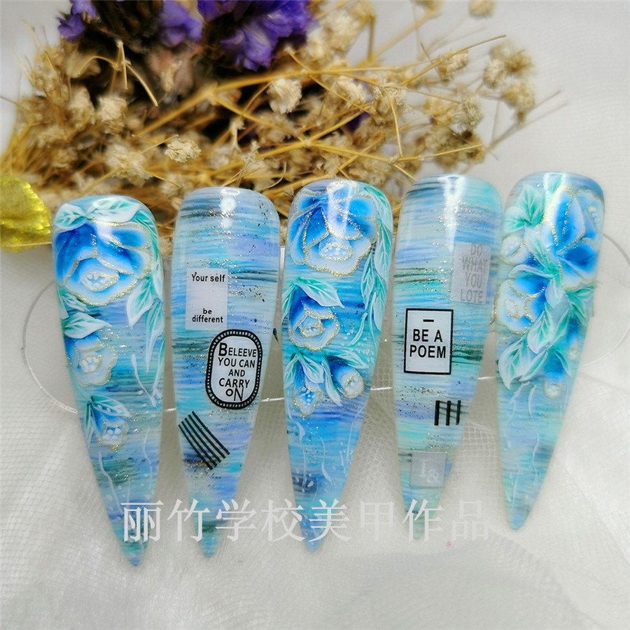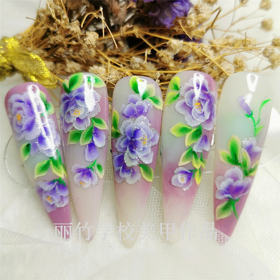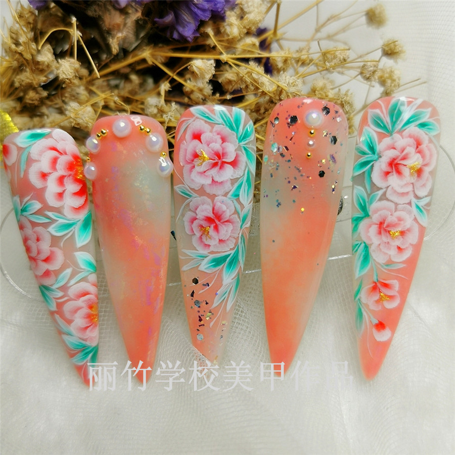 南寧美甲培訓(xùn):花朵彩繪美甲作品
