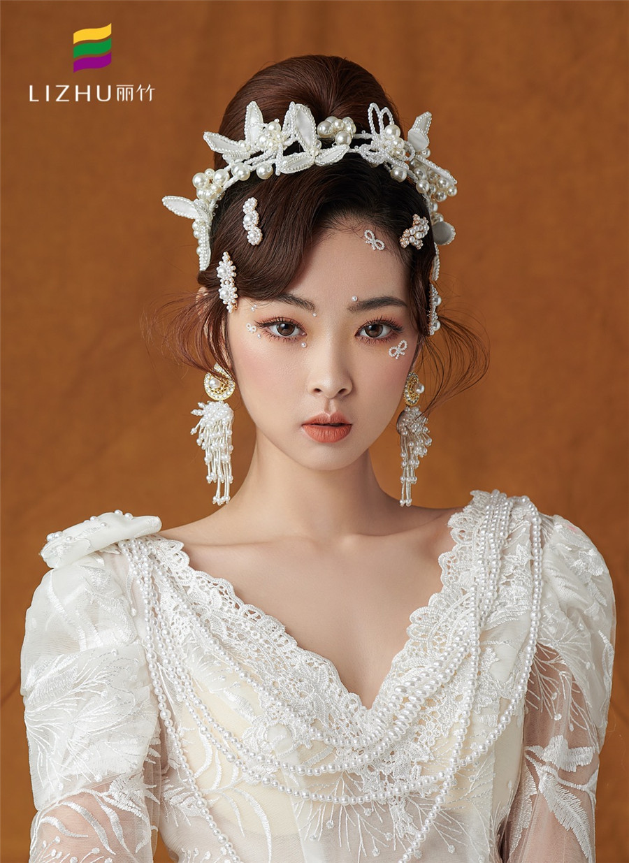 南寧化妝學(xué)校作品:輕奢復(fù)古珍珠妝容:復(fù)古簡潔優(yōu)雅的盤發(fā),佩戴少女俏皮的頭飾,純白珍珠搭配的精致,展示出萬種舊日風(fēng)情,使得微微一笑很傾城!