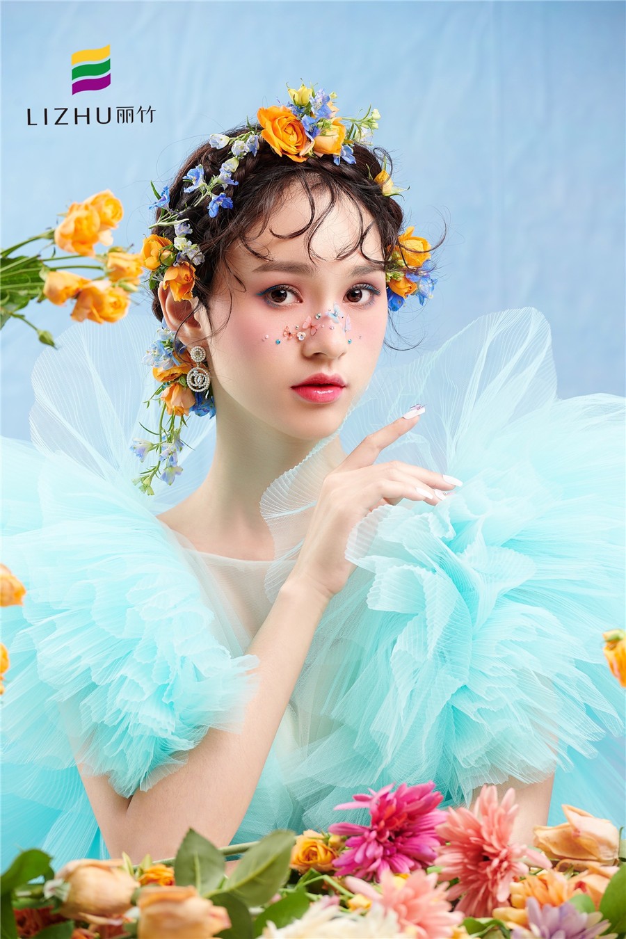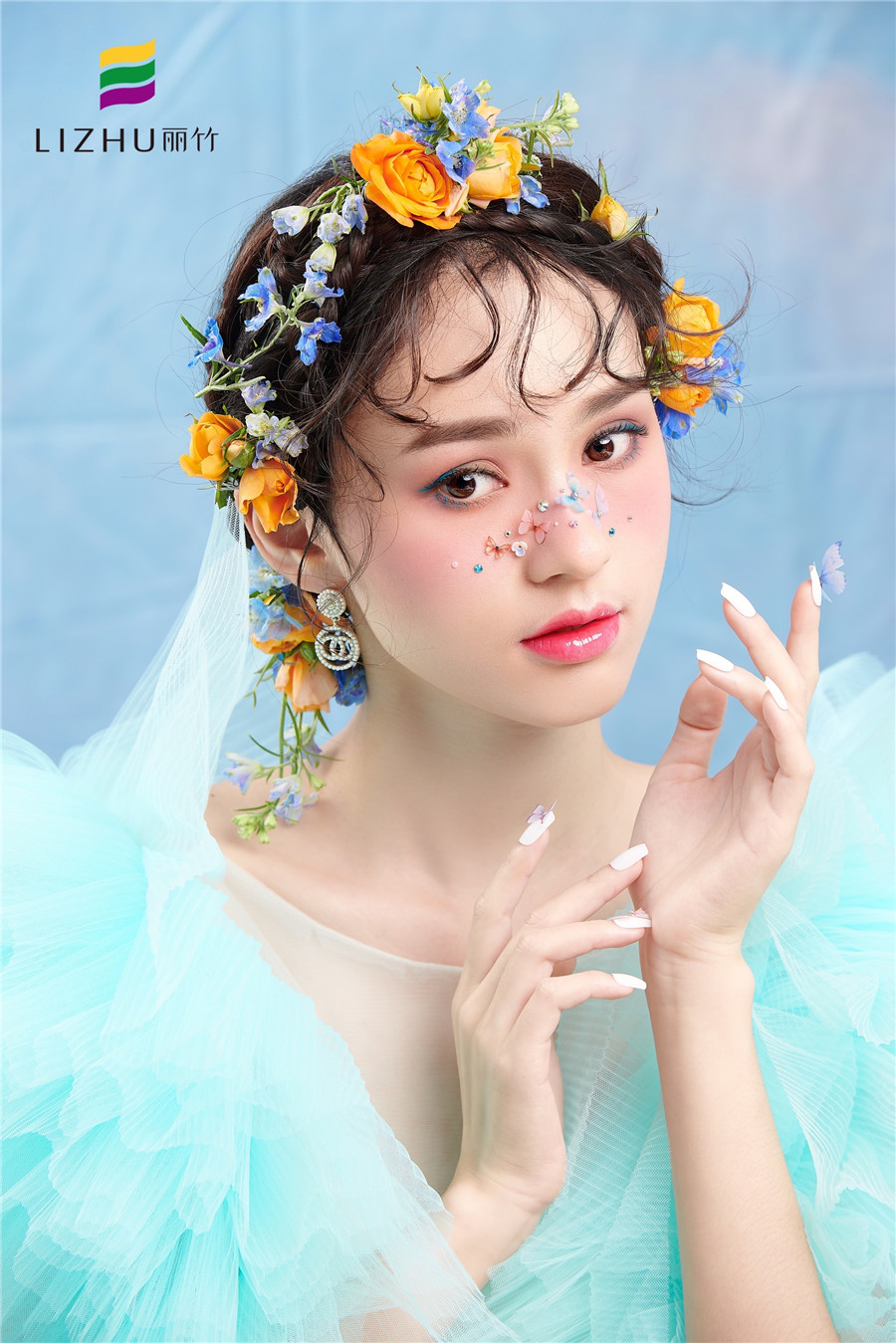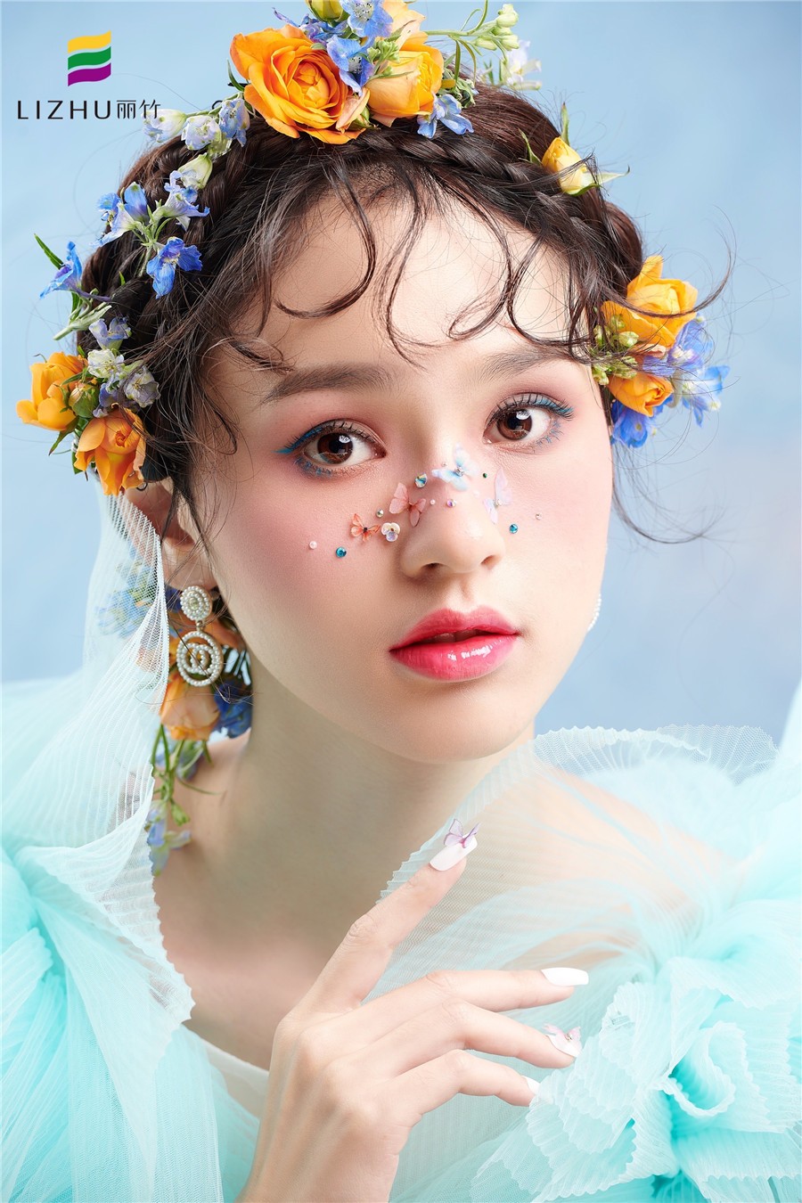 南寧化妝培訓(xùn)學(xué)校作品---減齡鮮花造型:完美碰撞出浪漫少女感,藍(lán)色眼線與紗裙的絕美搭配,捕獲清新浪漫的夏日芬芳,空氣中滿是花漾沁襲的甜蜜感 。