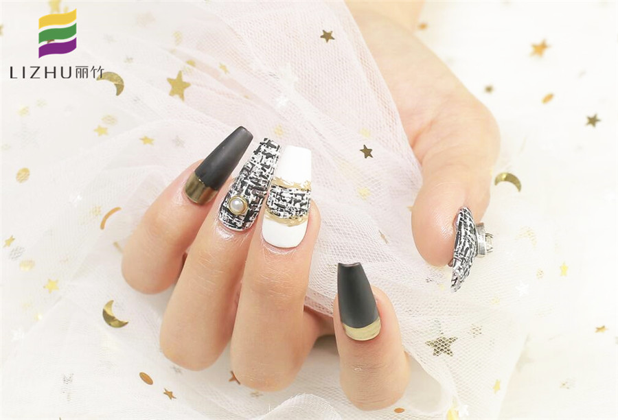 南寧美甲有哪些培訓(xùn)學(xué)校?請(qǐng)看麗竹美甲學(xué)校作品::黑白色塊撞色美甲