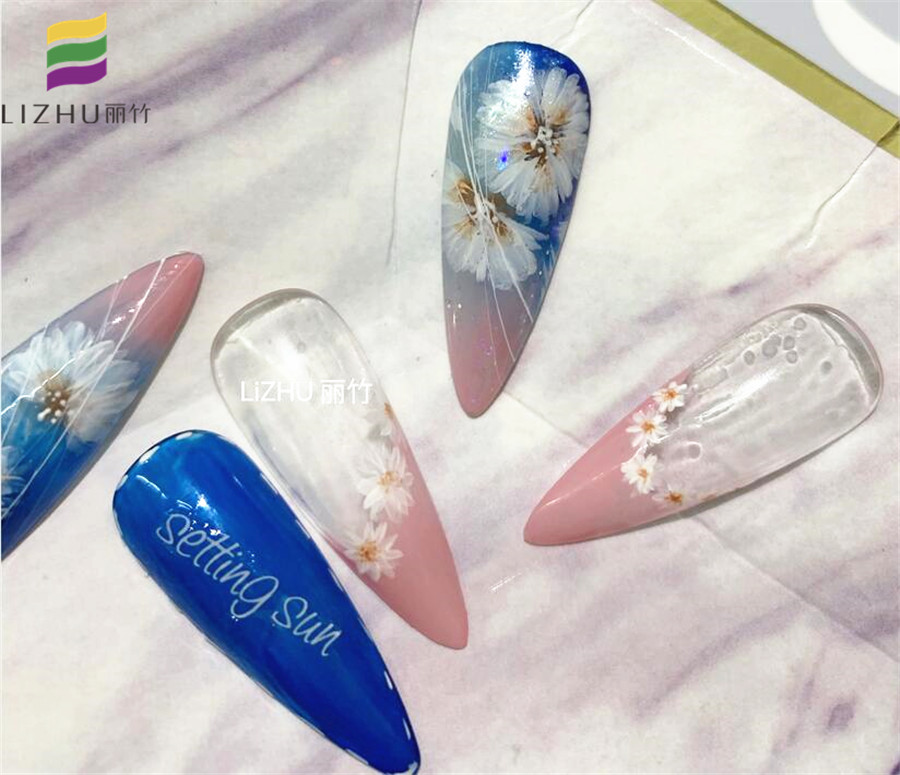 下面,就請和南寧美甲培訓學校(麗竹美甲學校)一起看看當藍色與粉色搭配,在碰撞上小雛菊時會有怎樣的火花吧!