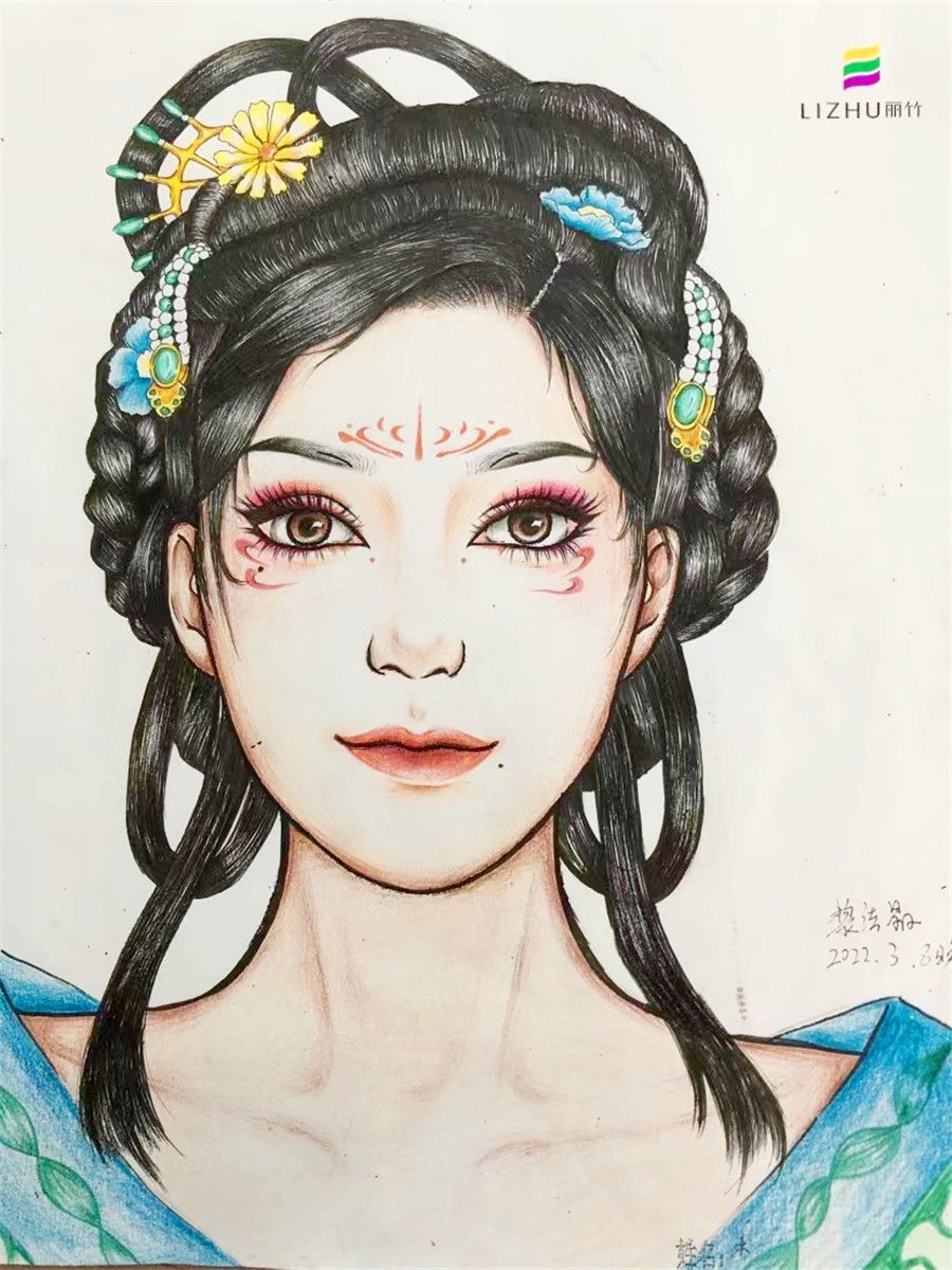 南寧化妝學(xué)校一對(duì)一課堂分享:紙上美人圖的繪制是化妝師的必修課程。美人圖的繪制,與化妝有相通之處。它主要可以鍛煉學(xué)員們在一個(gè)平面的紙上體現(xiàn)立體的五官輪廓的繪制,還可以讓學(xué)員練習(xí)顏色搭配,更好把握妝面的色彩感。南寧彩妝學(xué)校(麗竹彩妝學(xué)校)接下來(lái)就為大家分享幾幅南寧學(xué)彩妝學(xué)員的紙妝美人圖作品。