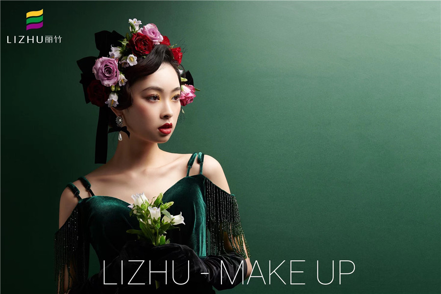 廣西彩妝學(xué)校一對一教學(xué)-麗竹學(xué)校彩妝作品:復(fù)古鮮花新娘造型(二)