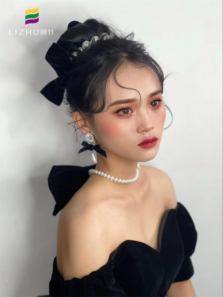 廣西美妝造型學(xué)校---黑色禮服造型:簡而不失其華的妝容,配上素雅的珍珠頭飾,身穿露肩黑色絲絨禮服,帶出輕松活潑的浪漫感。想在廣西南寧學(xué)化妝,但是不知道廣西化妝學(xué)校哪家學(xué)費(fèi)便宜?廣西教彩妝造型哪家比較時尚?不如就趁現(xiàn)在麗竹學(xué)?;瘖y專業(yè)正在進(jìn)行學(xué)費(fèi)報名特惠活動,趕緊聯(lián)系我們報名吧!