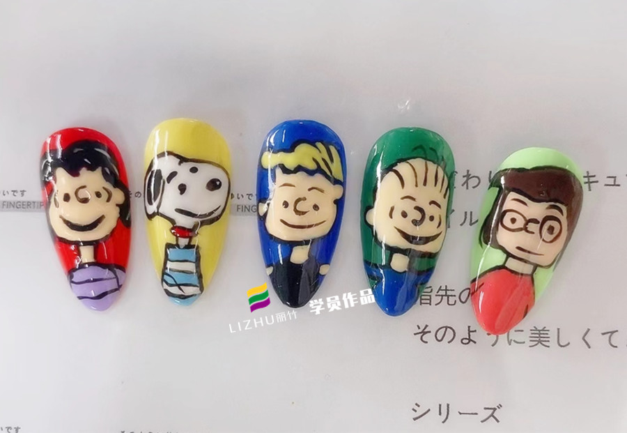 廣西南寧美甲學校、廣西美甲學校排行榜:上面這些就是在校美甲培訓班學員的課堂作品---彩繪卡通美甲。如果你對美甲感興趣,歡迎到廣西培訓美甲機構去報讀廣西美甲師培訓班(麗竹美甲速成班),學習常用的美甲技術,滿足你的興趣愛好!