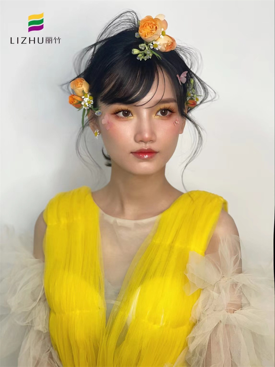 廣西學(xué)化妝哪家有資質(zhì)?請(qǐng)看麗竹化妝學(xué)校作品:森系鮮花造型(二)