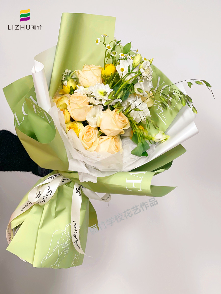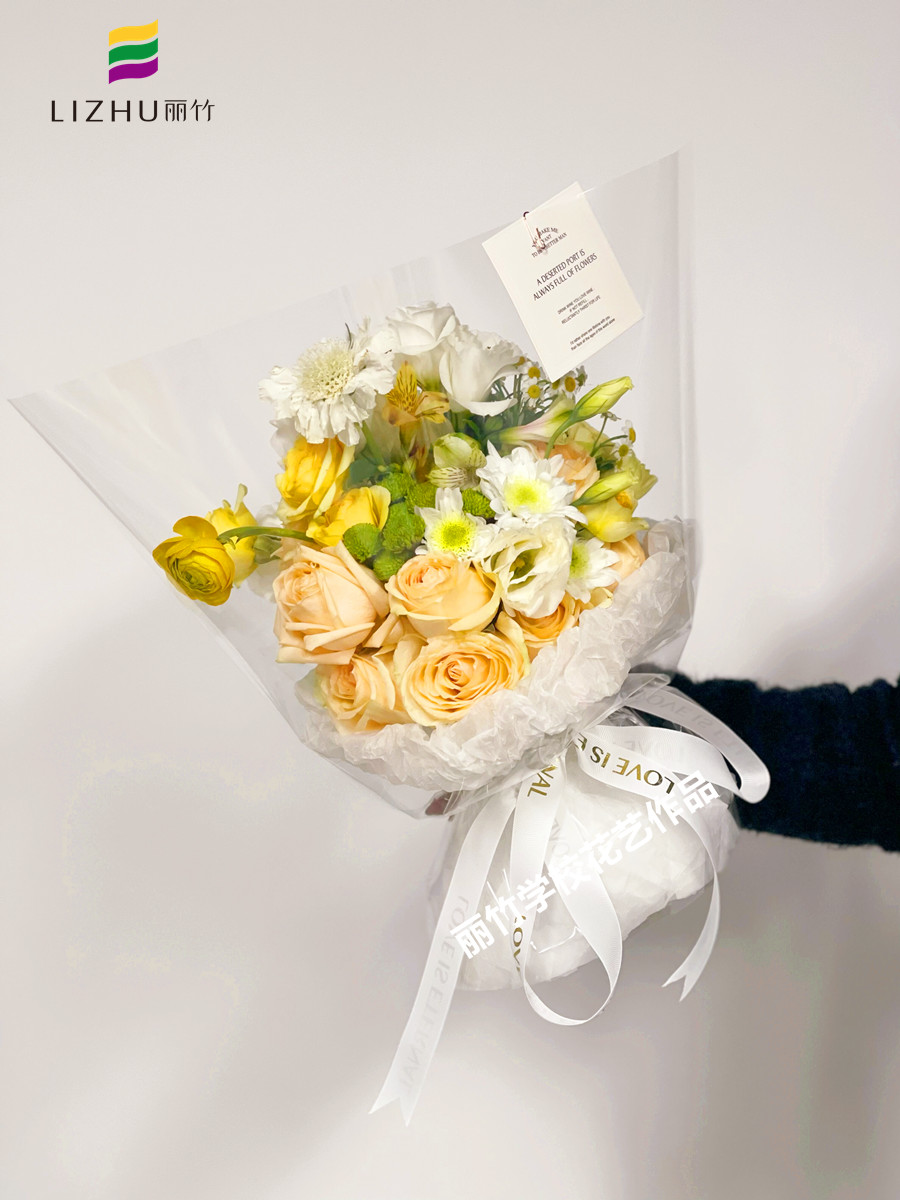 南寧有哪些花藝培訓班?麗竹學校用作品證明---韓式清新花束(二)