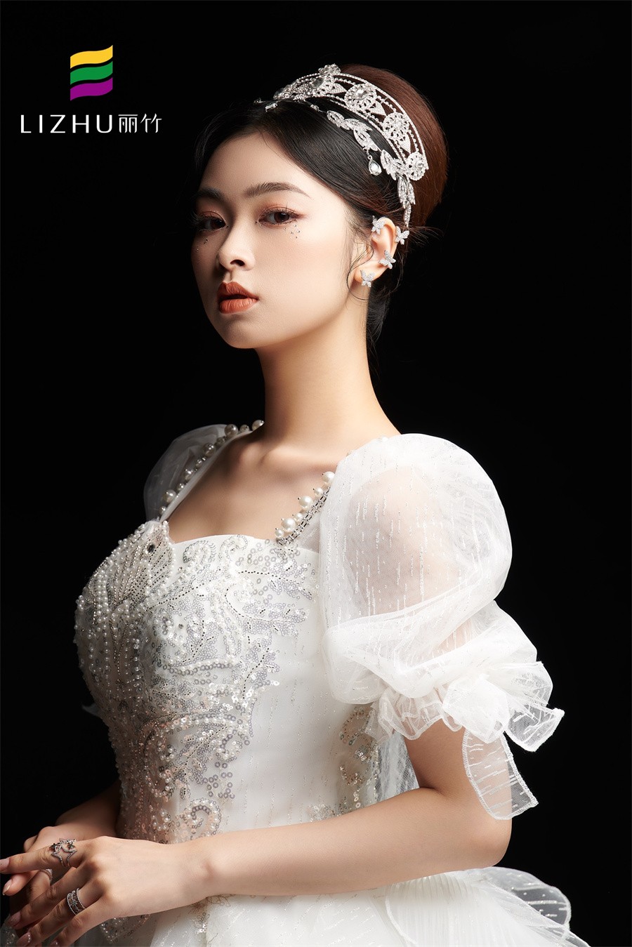 麗竹化妝盤札發(fā)造型班作品---“赫本頭”發(fā)型:做赫本頭頭的高發(fā)髻時(shí),比較合適的位置是在下頜的延長線上。發(fā)髻的大小也要根據(jù)臉型的大小來決定,切勿過大或過小,以免顯得比例不平衡。佩戴飾品的位置居中,這樣看起來才能使整個(gè)發(fā)型更加高貴和典雅!