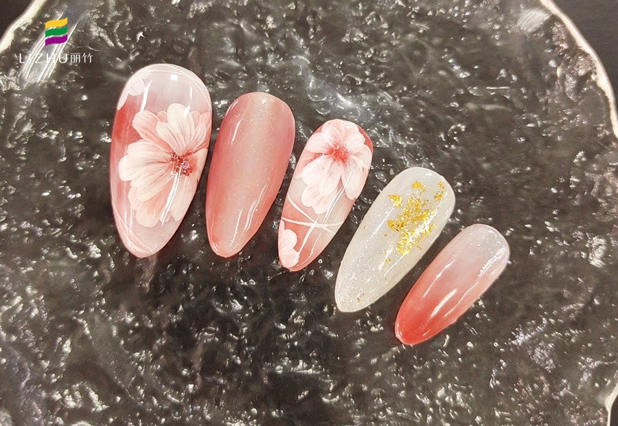 廣西美甲職業(yè)培訓(xùn)學(xué)校作品-春日彩繪花朵美甲(一)