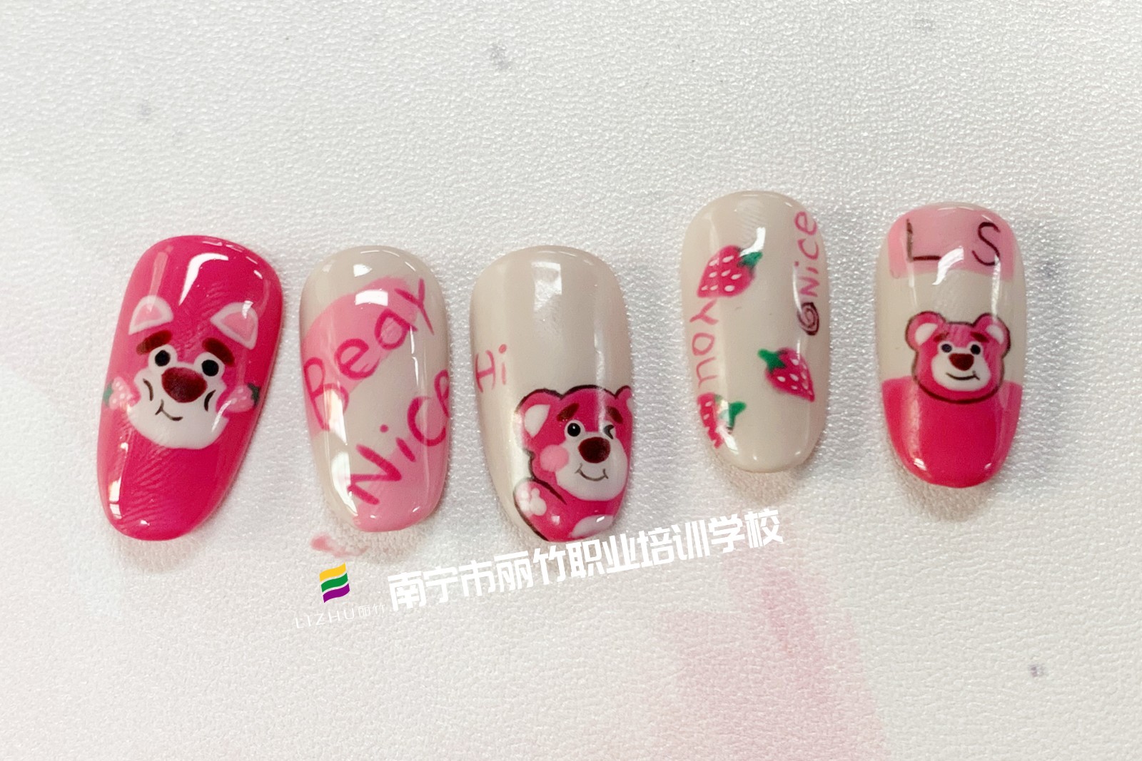 南寧學(xué)美甲款式、南寧培訓(xùn)美甲師:讓我們短暫忘掉世俗的煩惱,將你的童心未泯繪于“指”山,去創(chuàng)造屬于你的天馬行空!一起來看看南寧美甲學(xué)校的卡通系列美甲吧!每個人的童趣都不一樣,也許你的童趣更富色彩,如果是這樣,不妨也像南寧美甲造型培訓(xùn)-南寧美甲培訓(xùn)班的學(xué)員們一樣動手將它們繪制成美甲作品吧!