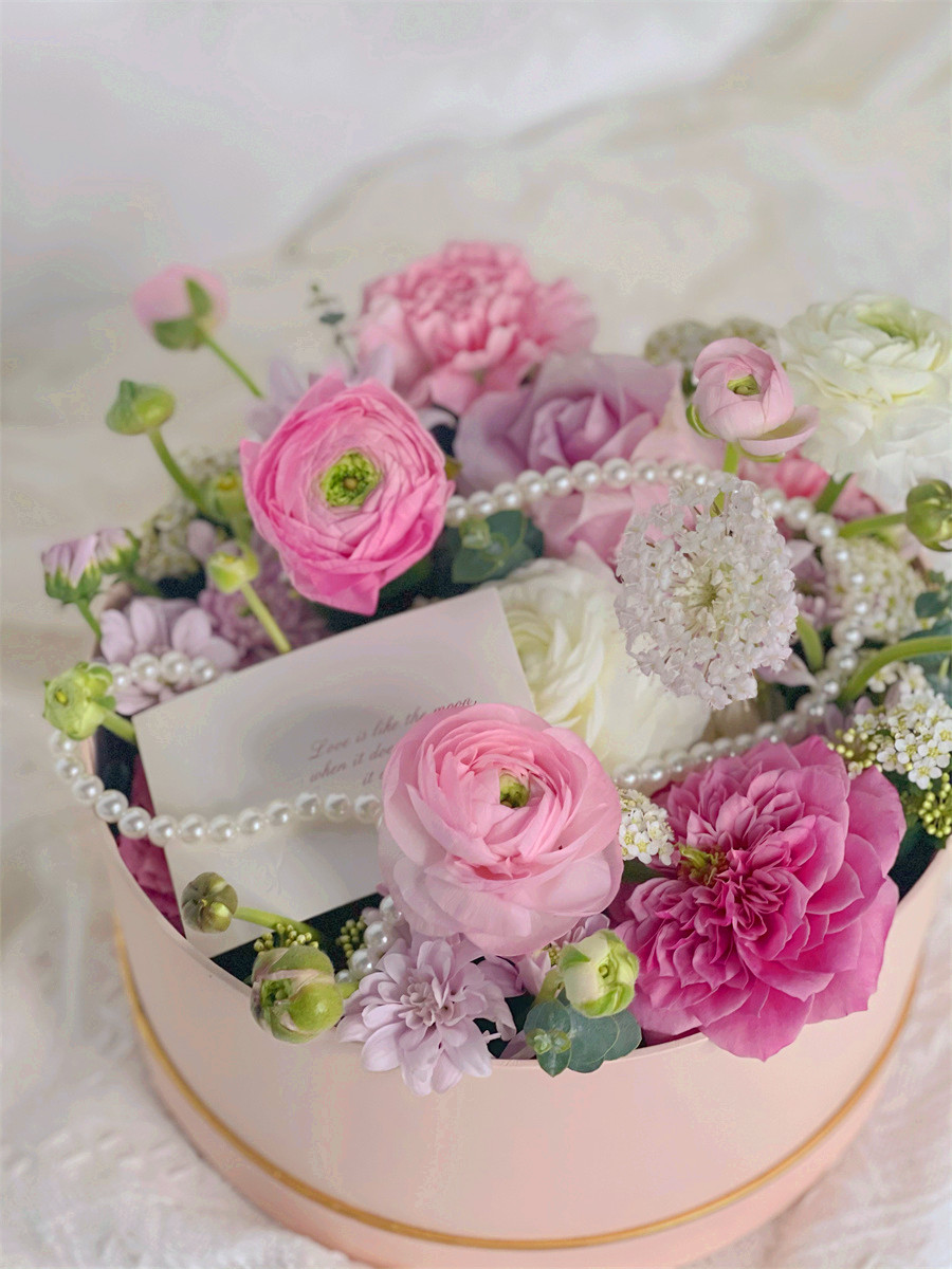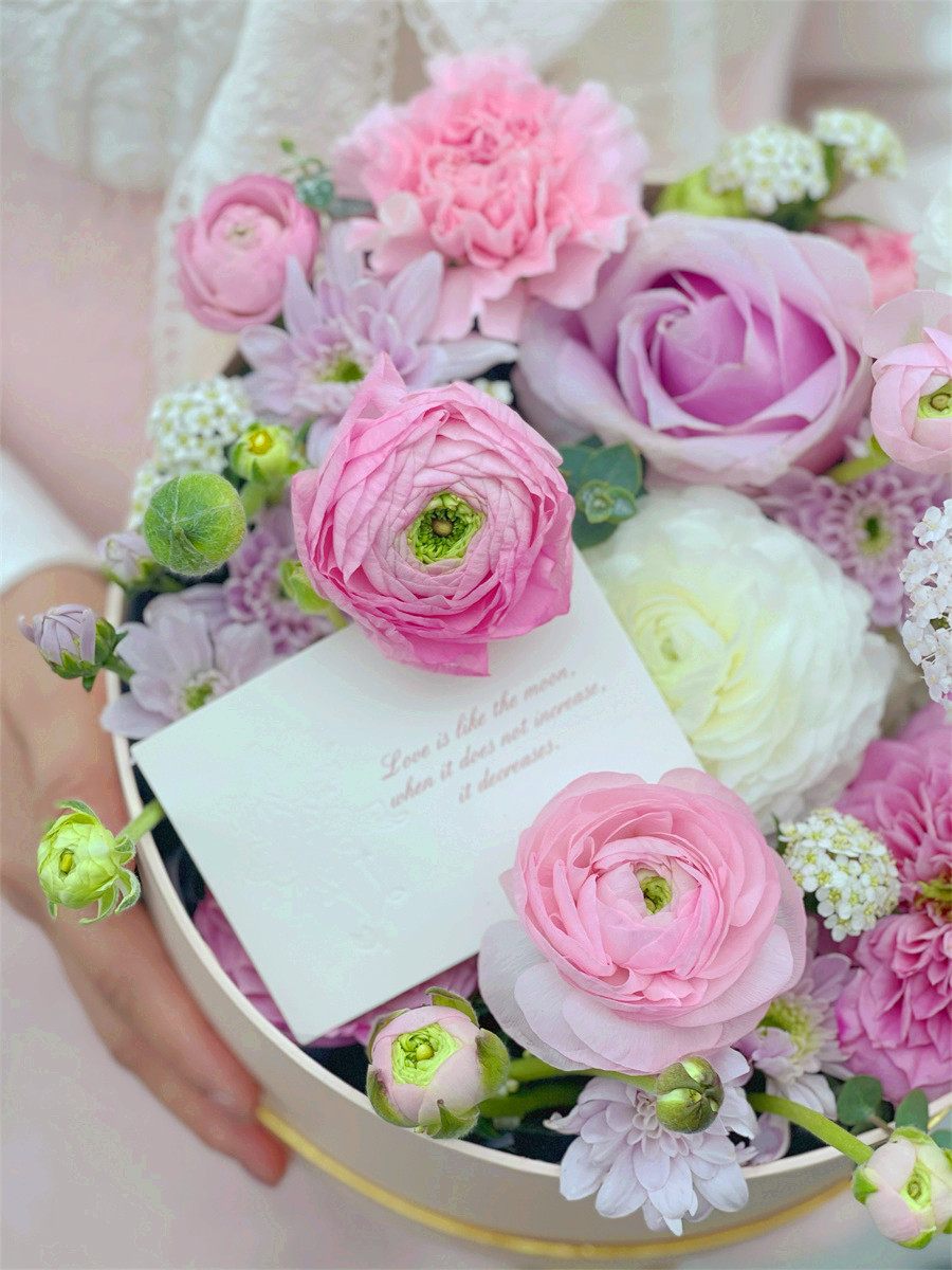 在制作韓式花盒時,花盒以及花材的色彩采用單色或同色系,即使選擇撞色的花材進(jìn)行搭配,也要適中保持干凈整潔。在進(jìn)行插花設(shè)計時,遵守風(fēng)格自然,精致浪漫,配色清新,不局限于單一品種……這樣打造出來的花盒總能散發(fā)出一絲感性與溫暖的色彩。