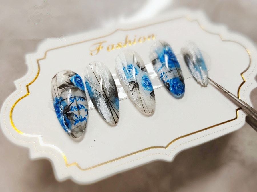 南寧市學美甲、南寧美甲課堂實踐:當藍色的玫瑰,遇上如黑白水墨得的暗系暈染色彩時,又是怎么樣一種美感呢?來,南寧美甲造型班-麗竹美甲造型班的暈染水彩玫瑰美甲,感受別樣的魅力吧!如果你也想在南寧學美甲技術,歡迎到南寧美甲專業(yè)學校-麗竹美甲專業(yè)學校去學習。