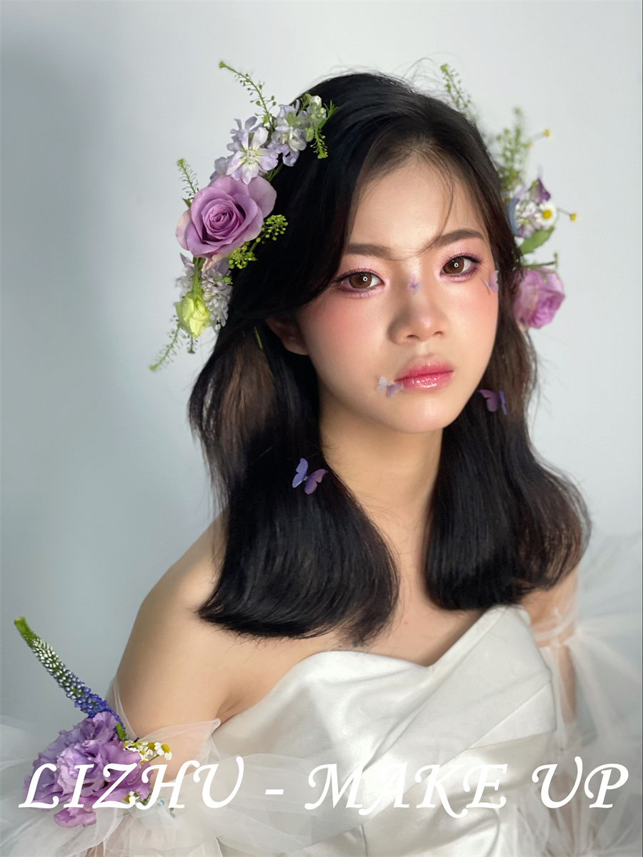 南寧學(xué)新娘造型哪里好?請(qǐng)看麗竹化妝學(xué)校作品---清新鮮花新娘(三)