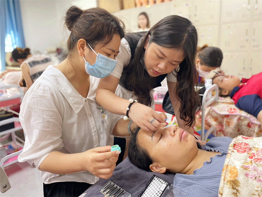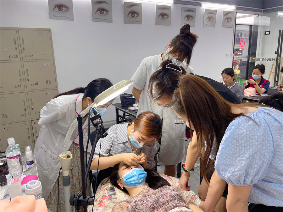 學(xué)員進(jìn)行美睫技術(shù)實(shí)踐,檢驗(yàn)學(xué)習(xí)成果