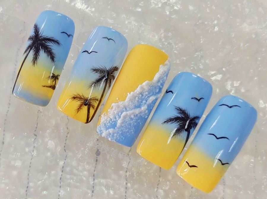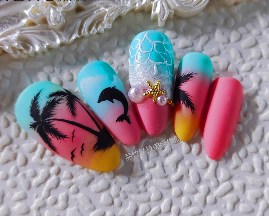 麗竹美甲培訓學員作品:夏日海灘美甲(一)