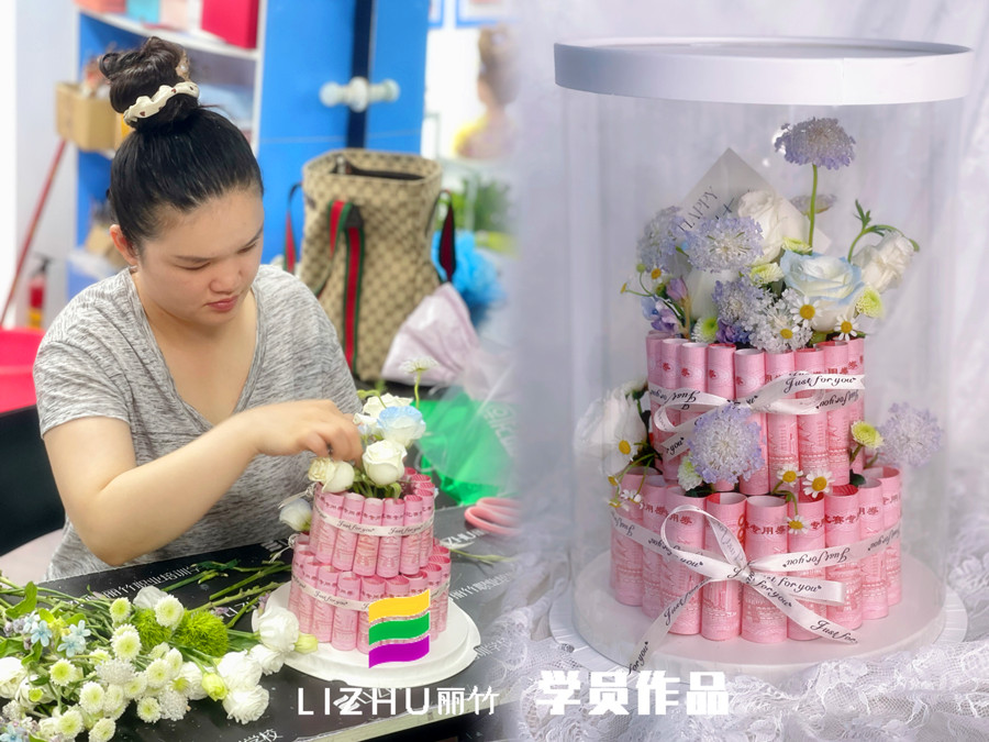 南寧培訓花藝師、南寧花藝培訓機構(gòu):將蛋糕和花束相互結(jié)合,制作一款蛋糕花盒作品,如何?南寧花藝學校的同學們就將這種想法付諸行動了,一起去看看她們的蛋糕花盒制作出的花藝作品吧!如果你也想借助花束表達出你的心意,現(xiàn)在就可以通過下面的方式關(guān)注麗竹學校花藝專業(yè),提前約到南寧花藝培訓班去參觀,試聽,體驗插花樂趣,滿意之后在報名吧!