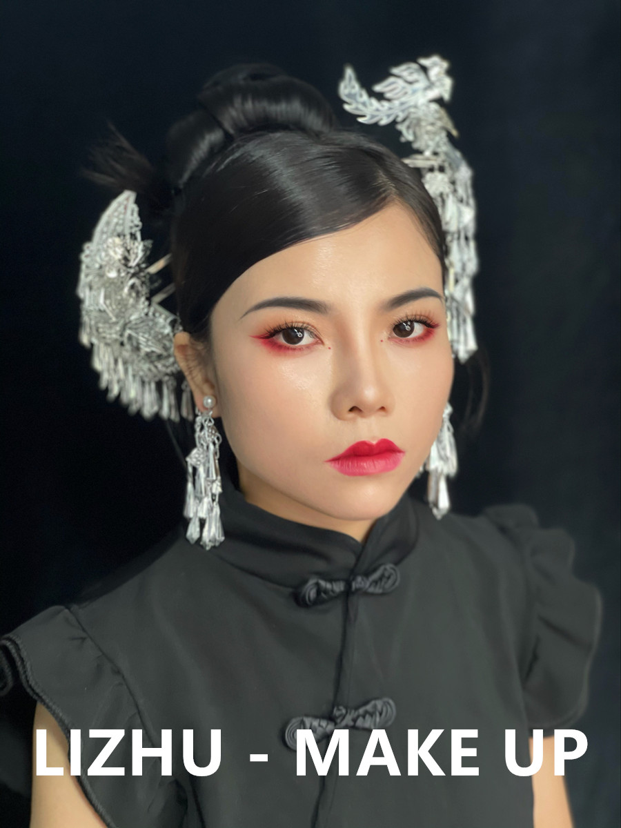 南寧化妝彩妝造型培訓、南寧學新娘寫真作品:國風造型:少數(shù)風情的銀質珠釵發(fā)飾,俏皮簡約的高聳盤發(fā)造型,玫紅眼影與唇妝的風情演繹,搭配改良版中式黑色旗袍,好一個優(yōu)雅韻味的國風造型。無論你是想為自己學化妝,還是想以此謀生,都歡迎先通過下面的方式關注南寧美妝學校-南寧化妝師培訓班獲取到校參觀,試聽的名額,滿意之后在報名!