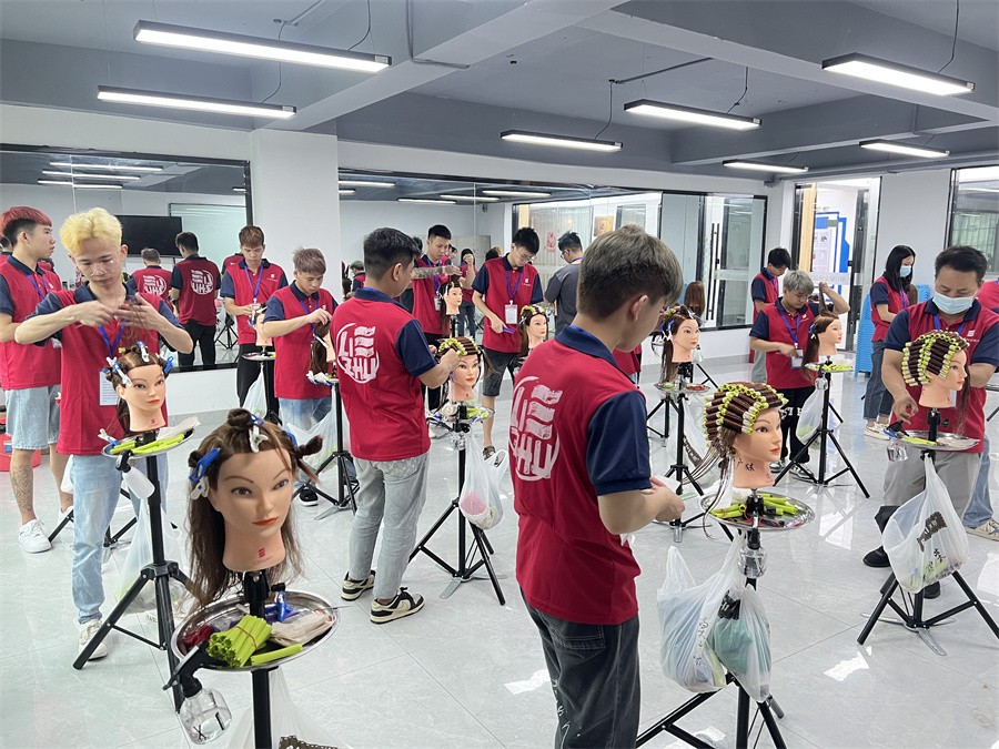 南寧學美發(fā)造型,美發(fā)燙染技術班學員練習上杠