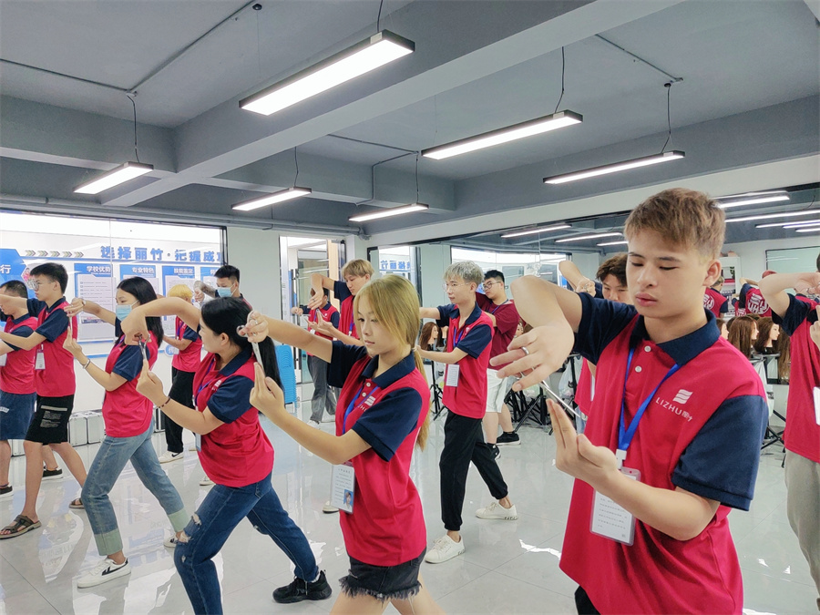 南寧美發(fā)基礎培訓,美發(fā)基礎班學員練習剪發(fā)站姿,修剪動作