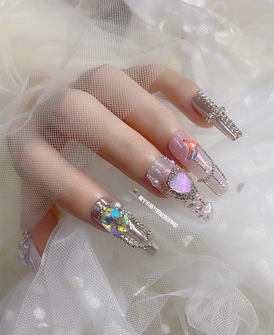 堆鉆美甲作品,廣西培訓(xùn)美甲造型
