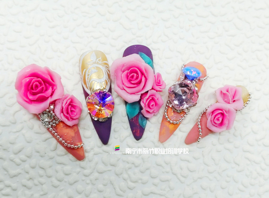 雙色玫瑰雕花,廣西美甲師培訓(xùn)作品