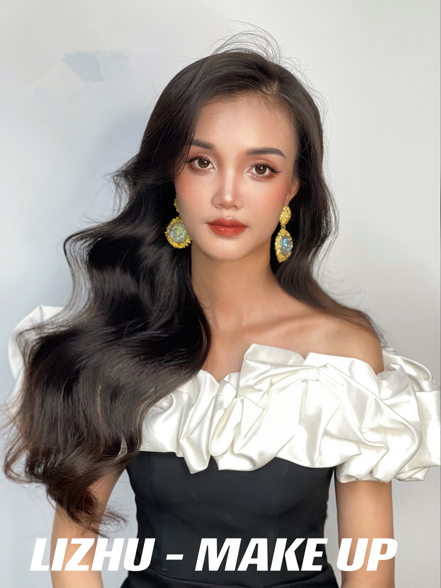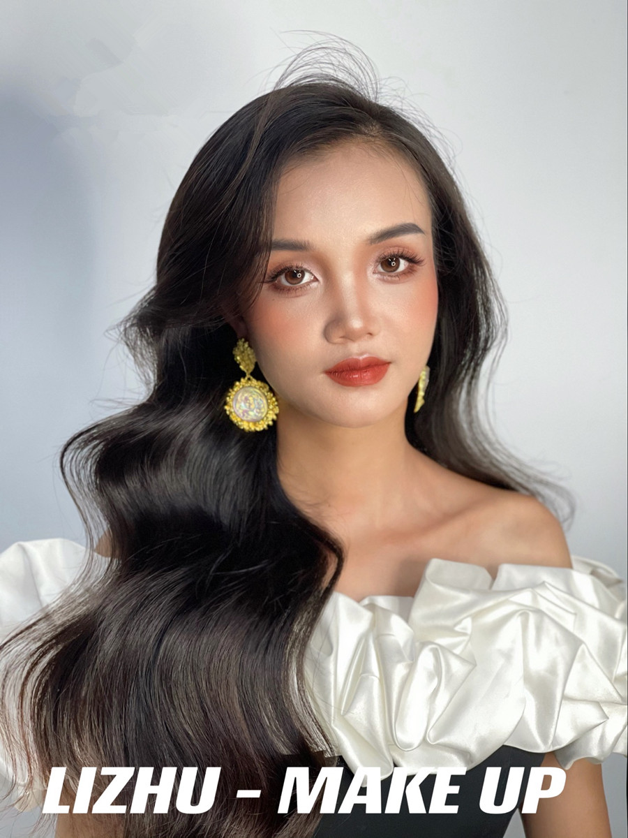 腮紅和唇妝采用同色系,起到承上啟下相互呼應(yīng)的作用。發(fā)型采用靈動流暢的披發(fā)造型,使得整個妝面的打造更具有魅惑特點(diǎn),彰顯出了濃顏系的泰式妝容。