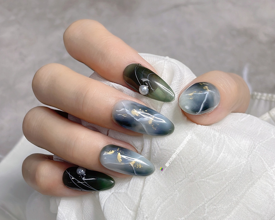 麗竹美甲進修班作品:大理石暈染飾品美甲(一)