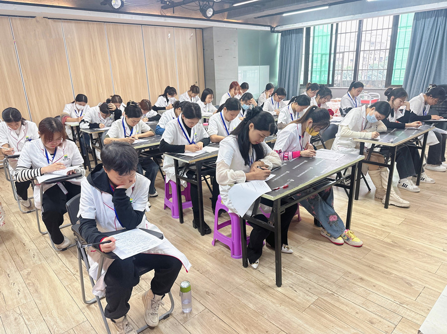 廣西美容師課堂、廣西美容理論:為了檢測(cè)同學(xué)們的學(xué)習(xí)成果,廣西美容師專業(yè)學(xué)校-麗竹美容培訓(xùn)于近日舉行了階段性的面部護(hù)理考核(理論+實(shí)操)。希望廣西美容面部護(hù)理培訓(xùn)的同學(xué)們可以在考核中歷練,在歷練中突破。如果你想在廣西學(xué)美容職業(yè),那請(qǐng)相自己的實(shí)力。