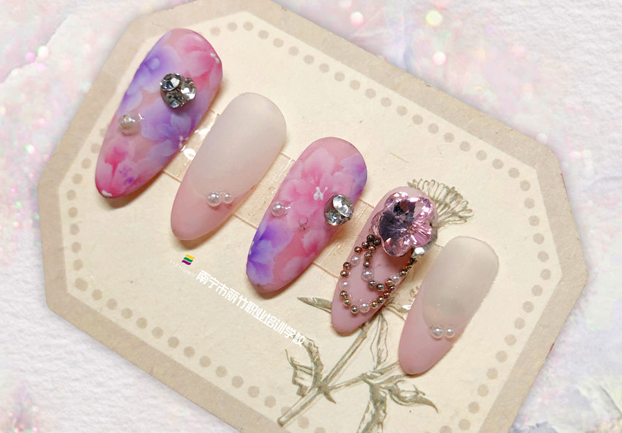 南寧美甲款式進(jìn)修作品:暈染花朵美甲