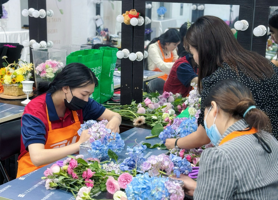 學花藝沒經(jīng)驗、廣西花藝培訓排名:廣西花藝師學校(麗竹花藝師學校)就和大家一起去看看廣西花藝專業(yè)課程里關(guān)于什么是瀑布桌花的內(nèi)容吧!選用西式長條桌,之后在桌面中間將已經(jīng)設(shè)計好的花束,有序長長地鋪陳開來。之后,在桌子的兩頭特意設(shè)計成瀑布桌花鏈接地面,這樣能夠更好營造浪味唯美的氛圍。