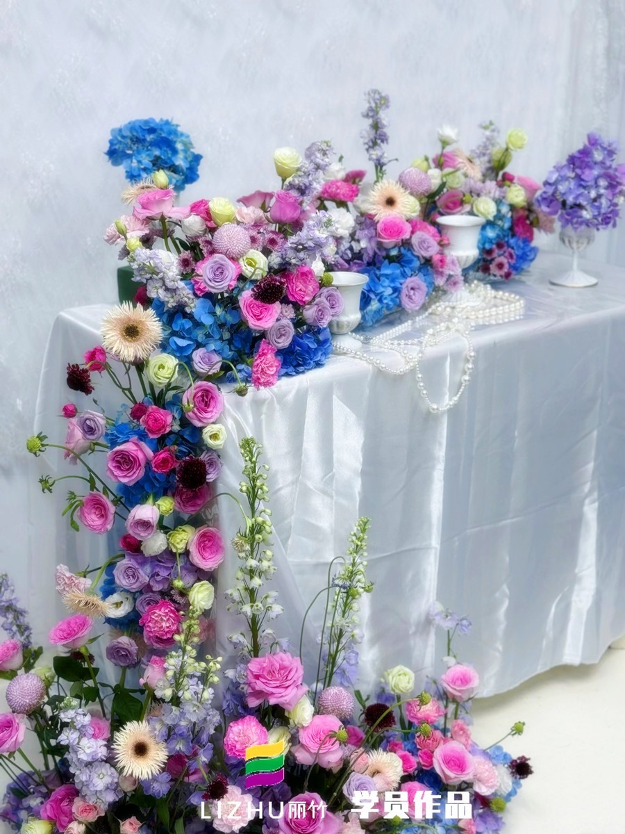 優(yōu)雅瀑布桌花布置,學花藝沒經(jīng)驗
