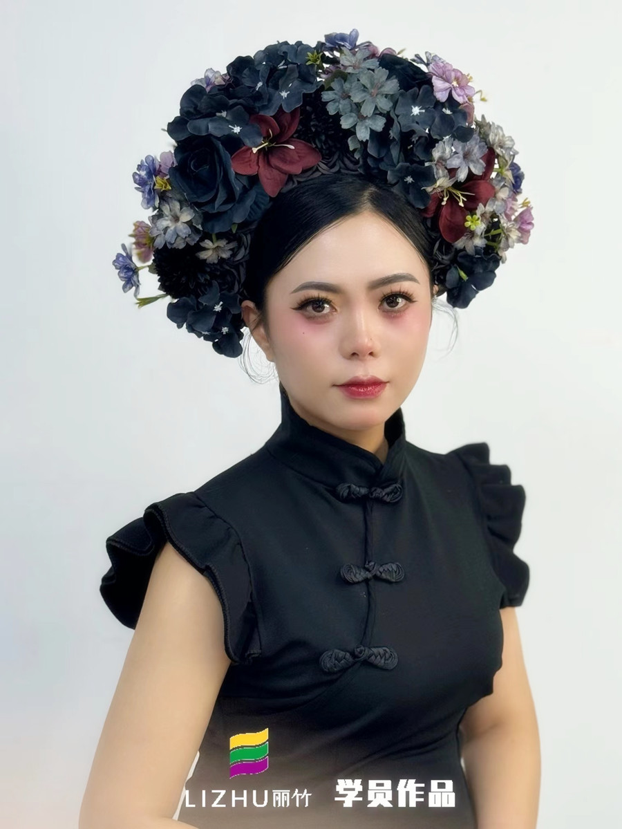 廣西化妝寫真、廣西寫真培訓化妝:彩妝零基礎學員作品---國風簪花造型。將屬于中國非物質文化遺產(chǎn)的蟳埔女“簪花圍”佩戴在頭上,增加了一種生機勃勃、生動活潑的生命氣息。而在廣西彩妝造型正規(guī)學校(麗竹彩妝造型正規(guī)學校)里,廣西化妝高彩班的同學們也在認真進行著國風簪花造型的創(chuàng)作。