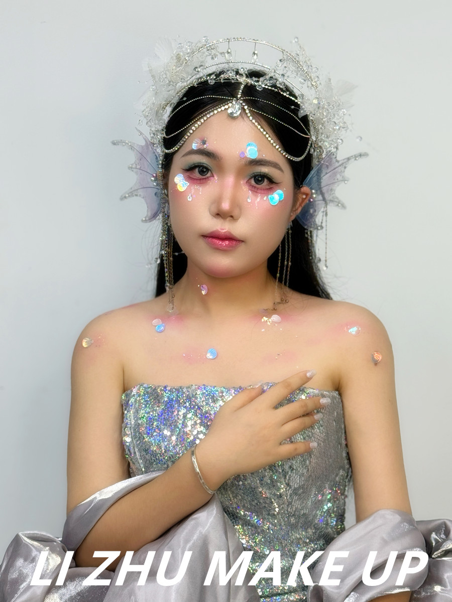 南寧人物化妝培訓、南寧化妝寫真造型(麗竹化妝造型)作品---人魚精靈公主造型。沒有經(jīng)驗,所以想知道哪里可以進行化妝造型培訓零基礎?想知道南寧學化妝哪里有實力?真心建議你到南寧化妝形象造型學校(麗竹學校)來提前預約參觀試聽的名額吧!