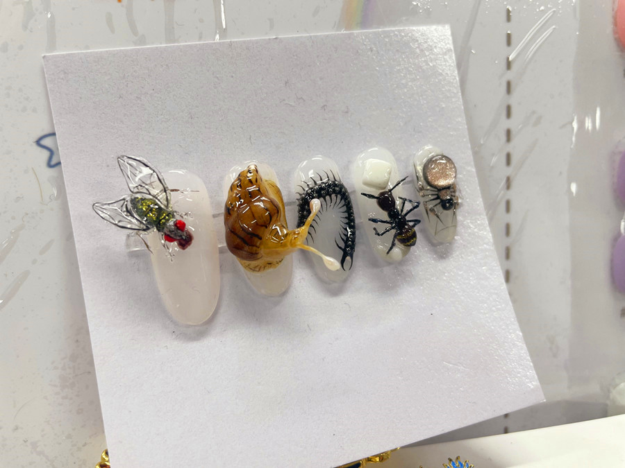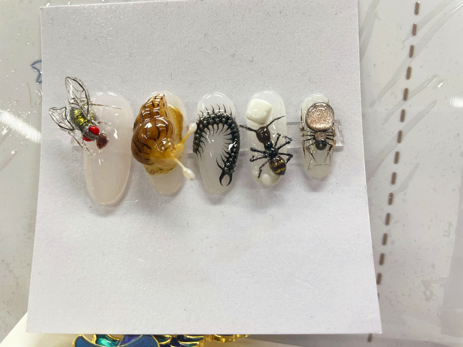 南寧美甲課堂、南寧美甲隨拍花絮:一說起蟲子,很多人不寒而栗。但是,相信當(dāng)你看完這副由南寧美甲造型專業(yè)學(xué)校(麗竹美甲造型學(xué)校)南寧美甲進(jìn)修班分享的昆蟲作品,完全不會(huì)感覺害怕,只會(huì)感慨如何做得這么惟妙惟肖。