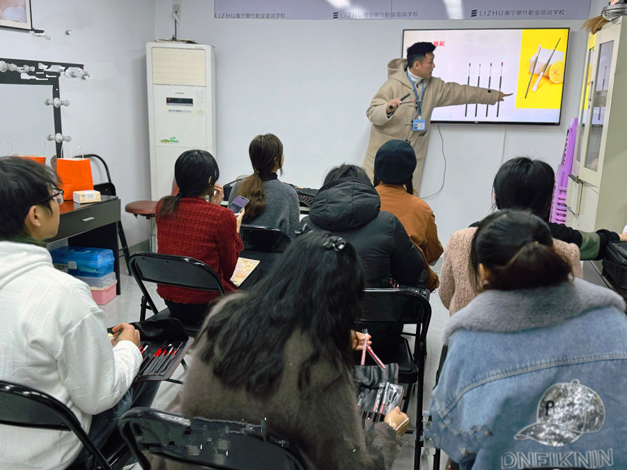 南寧化妝初學、南寧化妝學校十大排行榜:如果你學化妝從零開始,那你上的第 一 節(jié)就必須先從認識化妝工具極其用法開始。在南寧化妝基礎培訓班的教室里,玉老師正在給剛剛入學的同學講解相關知識,感興趣的小伙伴一起和我們去看看吧!