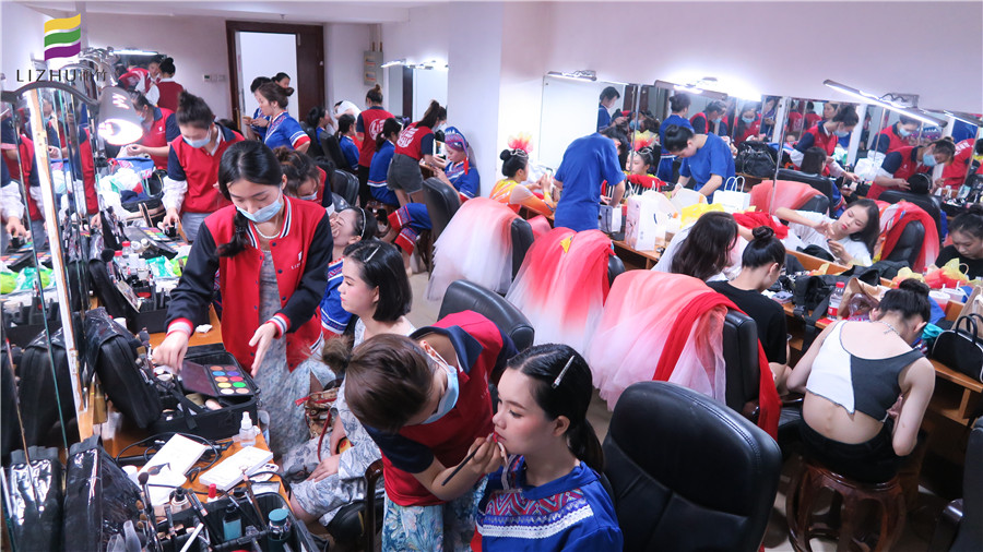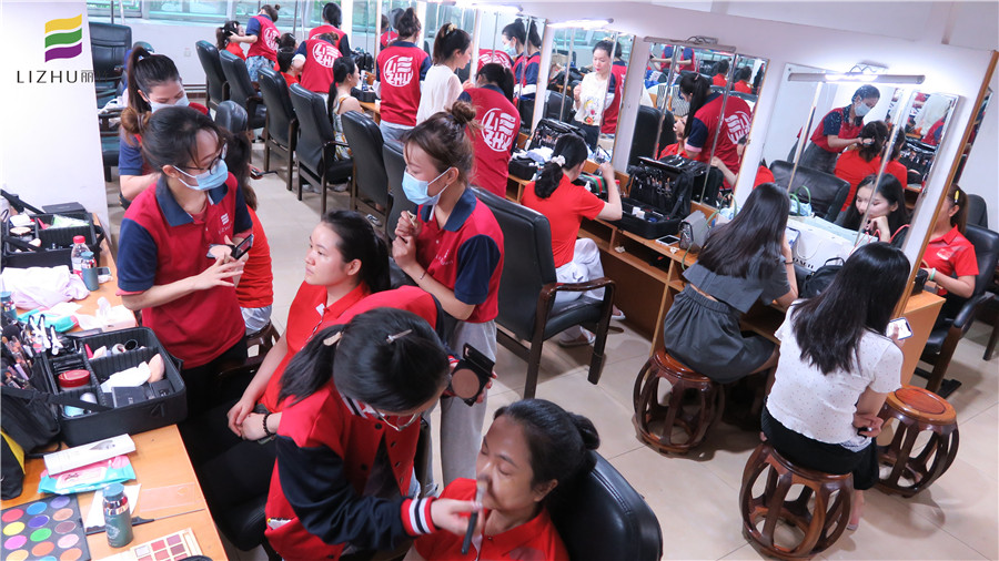 6月29日,麗竹學(xué)校組織化妝班學(xué)員為首府南寧紀(jì)檢監(jiān)察系統(tǒng)慶祝中國共產(chǎn)黨成立100周年合唱比賽提供妝造服務(wù)。