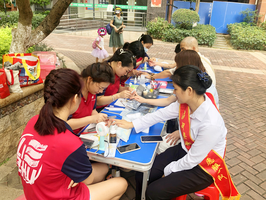 免費美甲活動,社區(qū)美甲活動:也許你曾經(jīng)在自己所在的小區(qū)里,看到過一群身穿紅色,上面印有"LIZHU”字樣的志愿者們,他們正在低頭認真的幫居民進行美甲服務(wù),這群人就是南寧美甲學(xué)校志愿者(麗竹美甲培訓(xùn)班)。近日,她們就來到了隆源公館為大家進行免費美甲修手,涂單色。