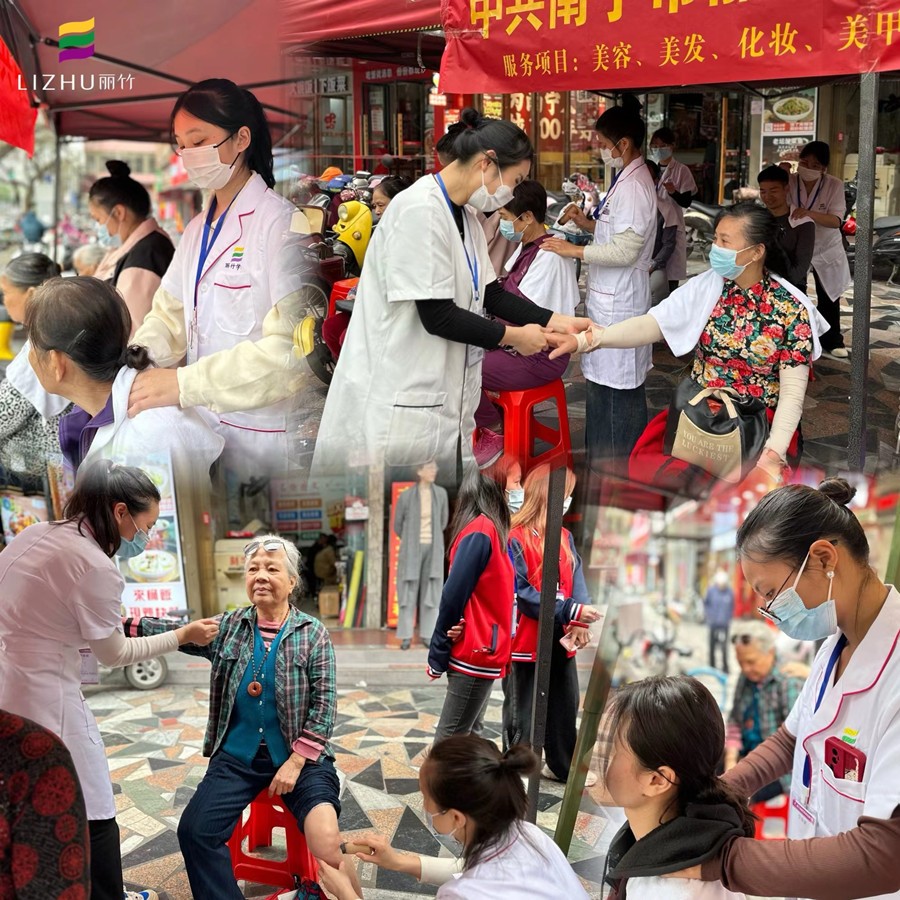 南寧美容公益活動(dòng)、南寧美容培訓(xùn)外出教學(xué):踩著三月的尾巴,南寧美容職業(yè)技師學(xué)校-南寧美容培訓(xùn)班(麗竹美容培訓(xùn)班)的同學(xué)們直接在校門口擺起了臨時(shí)“艾灸館”,免費(fèi)為居民提供艾灸和按 摩等服務(wù)。阿姨體驗(yàn)完后,都紛紛向同學(xué)們豎起了大拇指,感謝大家提供給的服務(wù),同學(xué)們也露出了燦爛的笑容給予答謝。