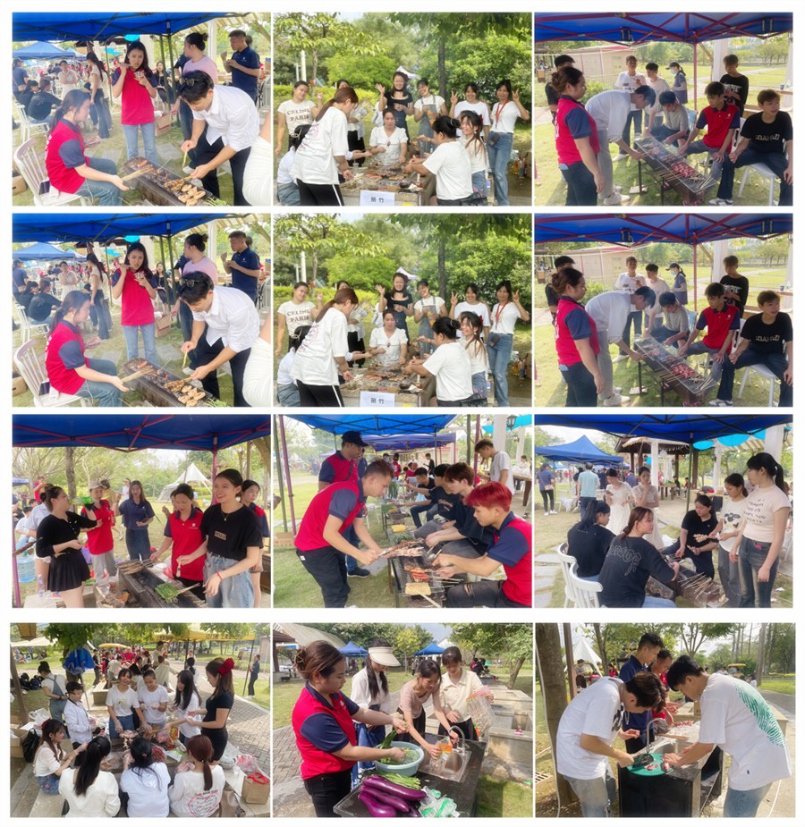 游戲結(jié)束后,終于到了同學(xué)們期待已久的“燒烤盛宴”。大家配合默契,清洗食物,涮調(diào)料的,烤肉的等等,各個(gè)步驟有條不紊地展開。隨著縷縷青煙縈繞上空,大家一邊燒烤一邊聊天,到處都飄散著歡聲笑語(yǔ)。
